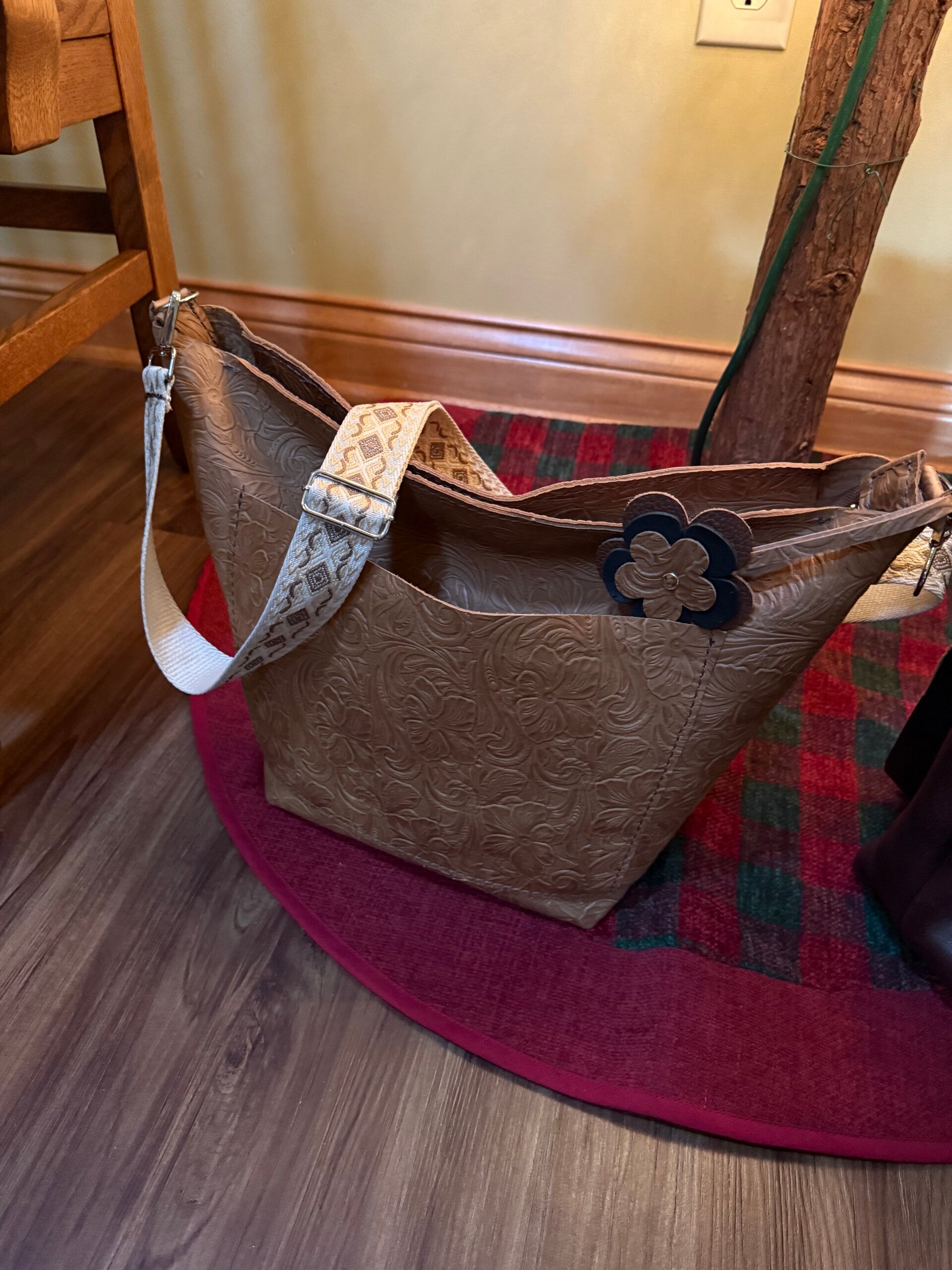 Our purses, from large to small are designed with your needs in mind. Most have small zippered pockets inside and many have pockets outside - big enough for your phone. Some purses have several compartments, some only one. Some have long straps, some short; many have adjustable straps.